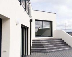 Le choix du demi-niveau s’est imposé pour une meilleure implantation de la maison sur le terrain. Ainsi, elle offre un maximum de confort et bénéficie d’un garage intégré composant avec l’architecture de la maison.